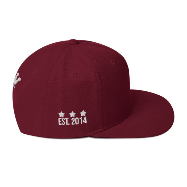 King Scorpion 360 Snapback Hat | Maroon is structured with a classic fit, flat brim, and full buckram. The adjustable snap closure makes it a comfortable, one-size-fits-most hat.