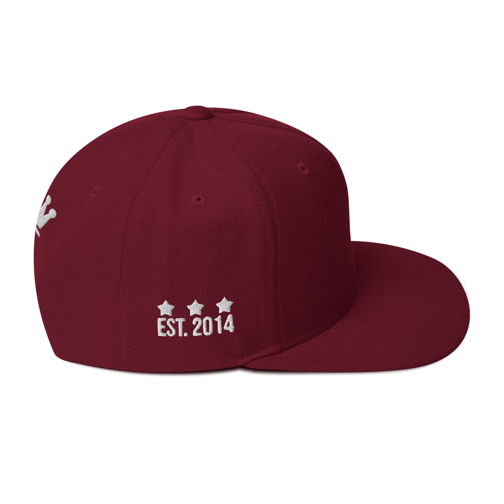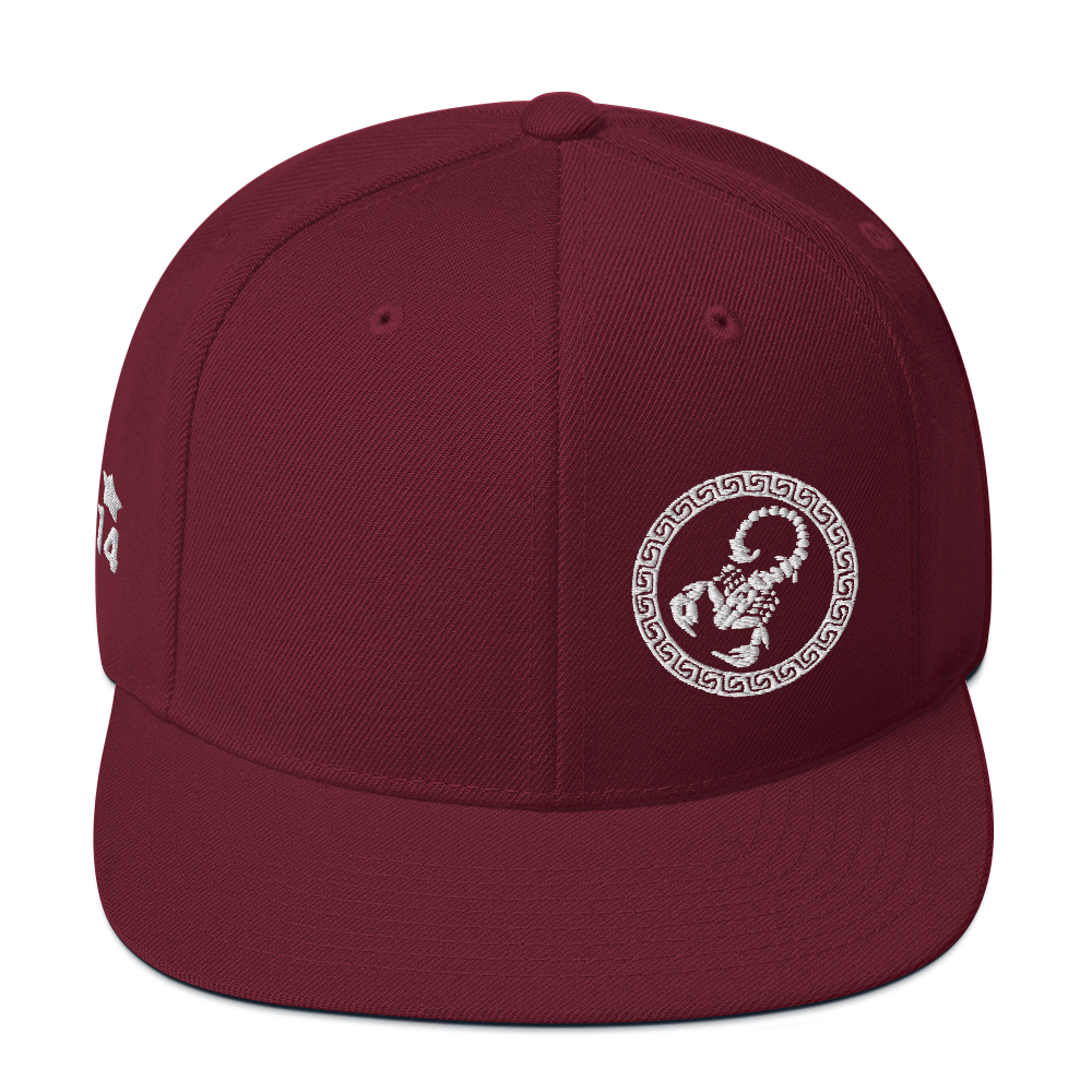 King Scorpion 360 Snapback Hat | Maroon is structured with a classic fit, flat brim, and full buckram. The adjustable snap closure makes it a comfortable, one-size-fits-most hat.