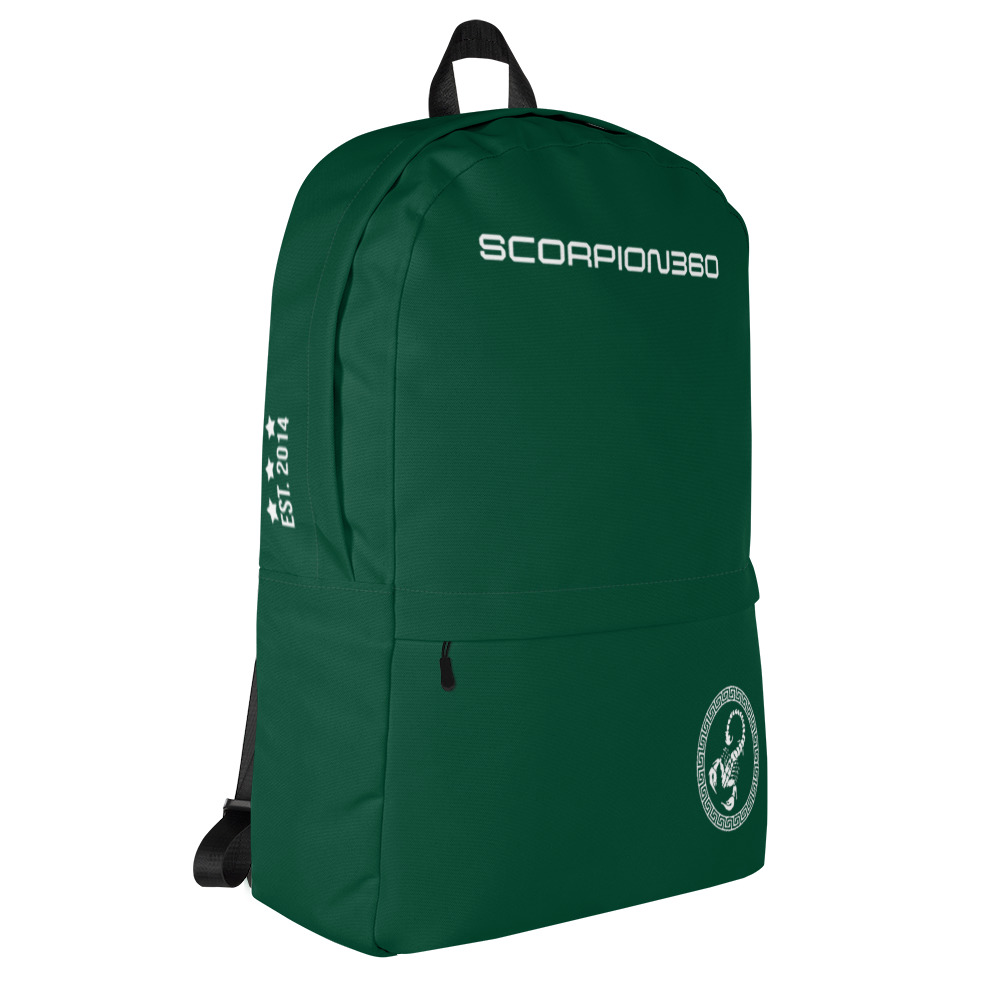 Scorpion 360 Backpack/ SBP-25871 | Racing Green & White medium size backpack is just what you need for daily use or sports activities! The pockets (including one for your laptop) give plenty of room for all your necessities, while the water-resistant material will protect them from the weather.