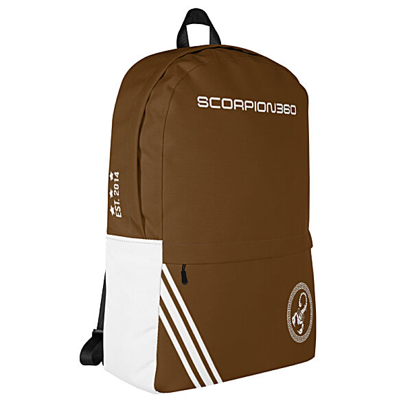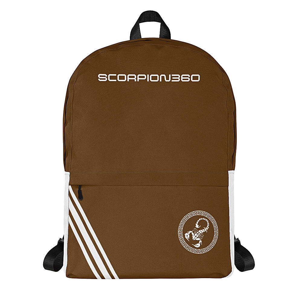 Scorpion 360 Backpack/ SBP-25883 Brown & White medium-size backpack is just what you need for daily use or sports activities! The pockets (including one for your laptop) give plenty of room for all your necessities, while the water-resistant material will protect them from the weather.