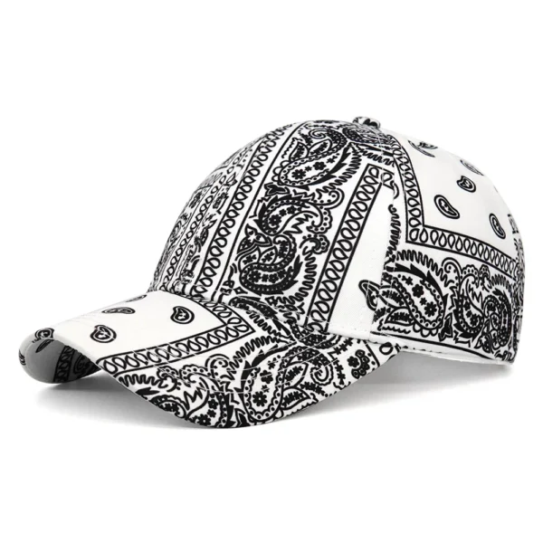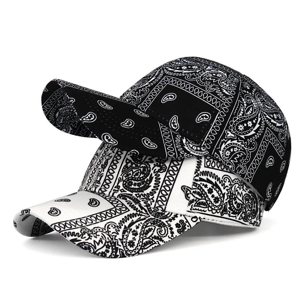 Crafted from high-quality twill fabric, this cap is built to withstand the rigors of daily wear while providing a lightweight, breathable experience. The striking black paisley print serves as a standout feature, offering a unique element that sets you apart from the crowd. This intricate design not only adds a touch of flair but also allows for easy pairing with a wide range of outfits, making it the perfect accessory for any occasion