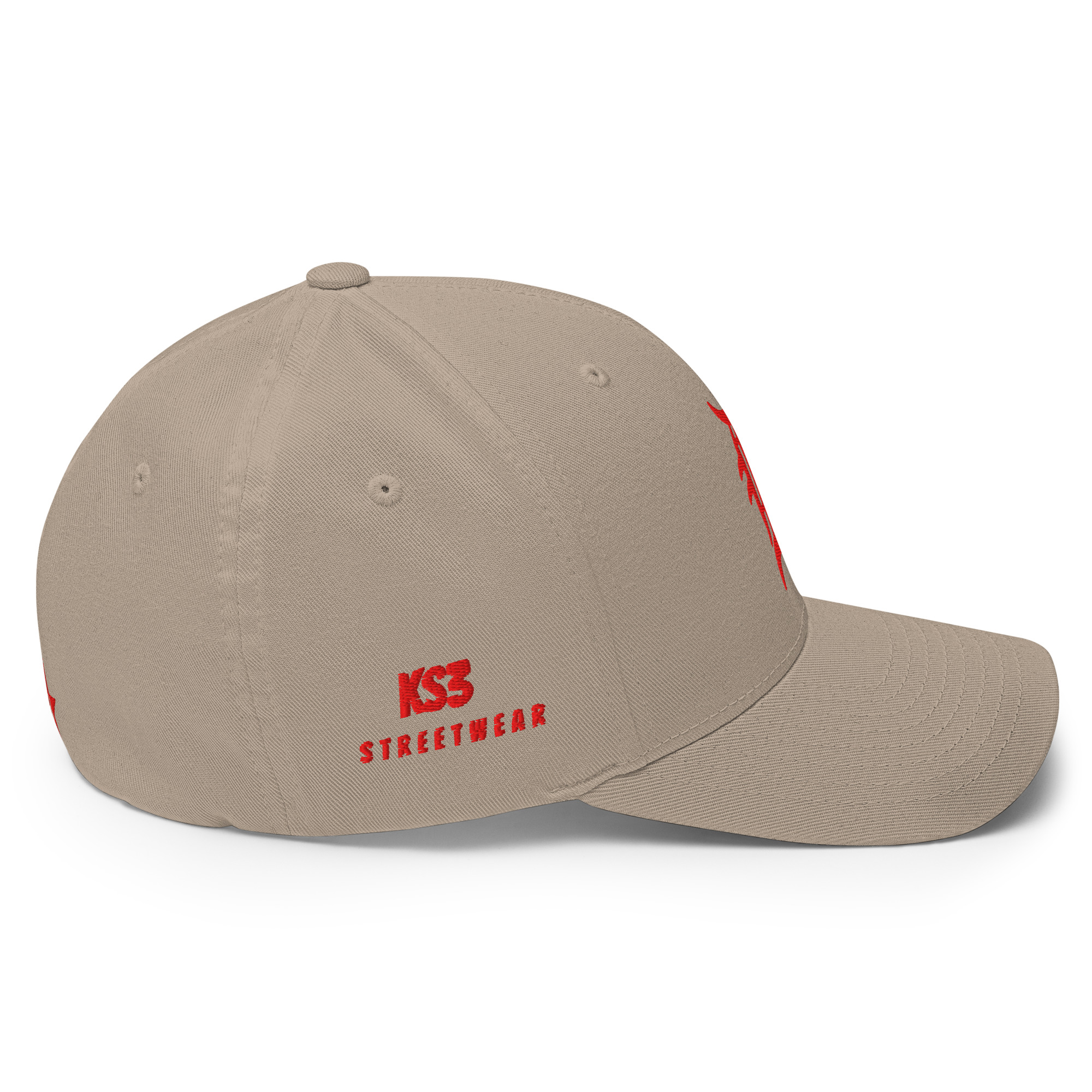 KS3 | Detroit Fitted Structured Twill Cap | Khaki/ Red | S/M, L/XL