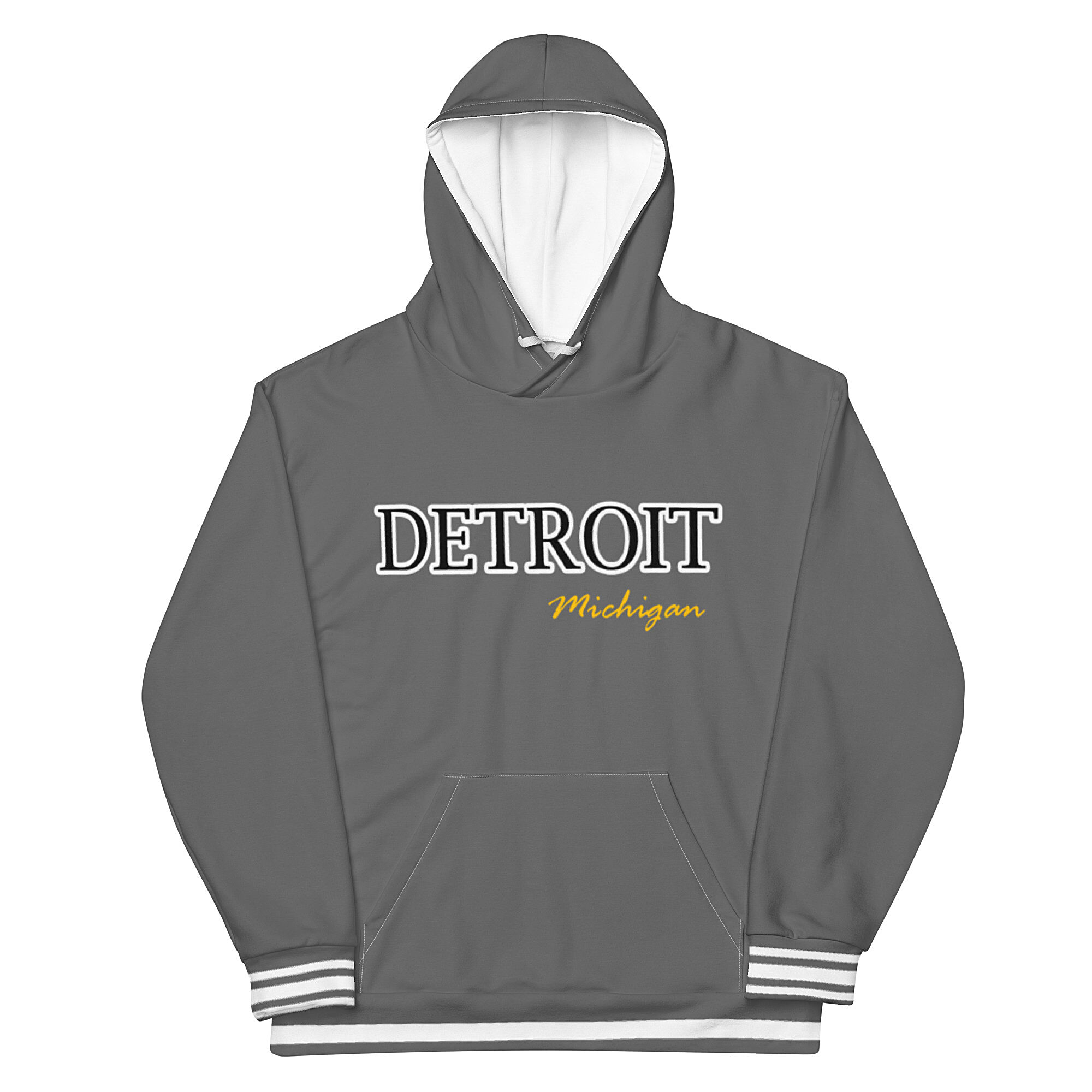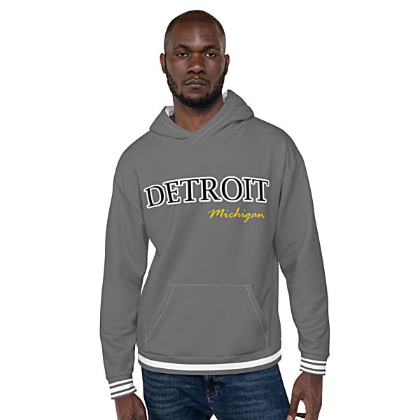 Grey Detroit Michigan Unisex Hoodie BDH-32115 has a soft outside with a vibrant print and an even softer brushed fleece inside. The hoodie has a relaxed fit, and it’s perfect for wrapping yourself into on a chilly evening.