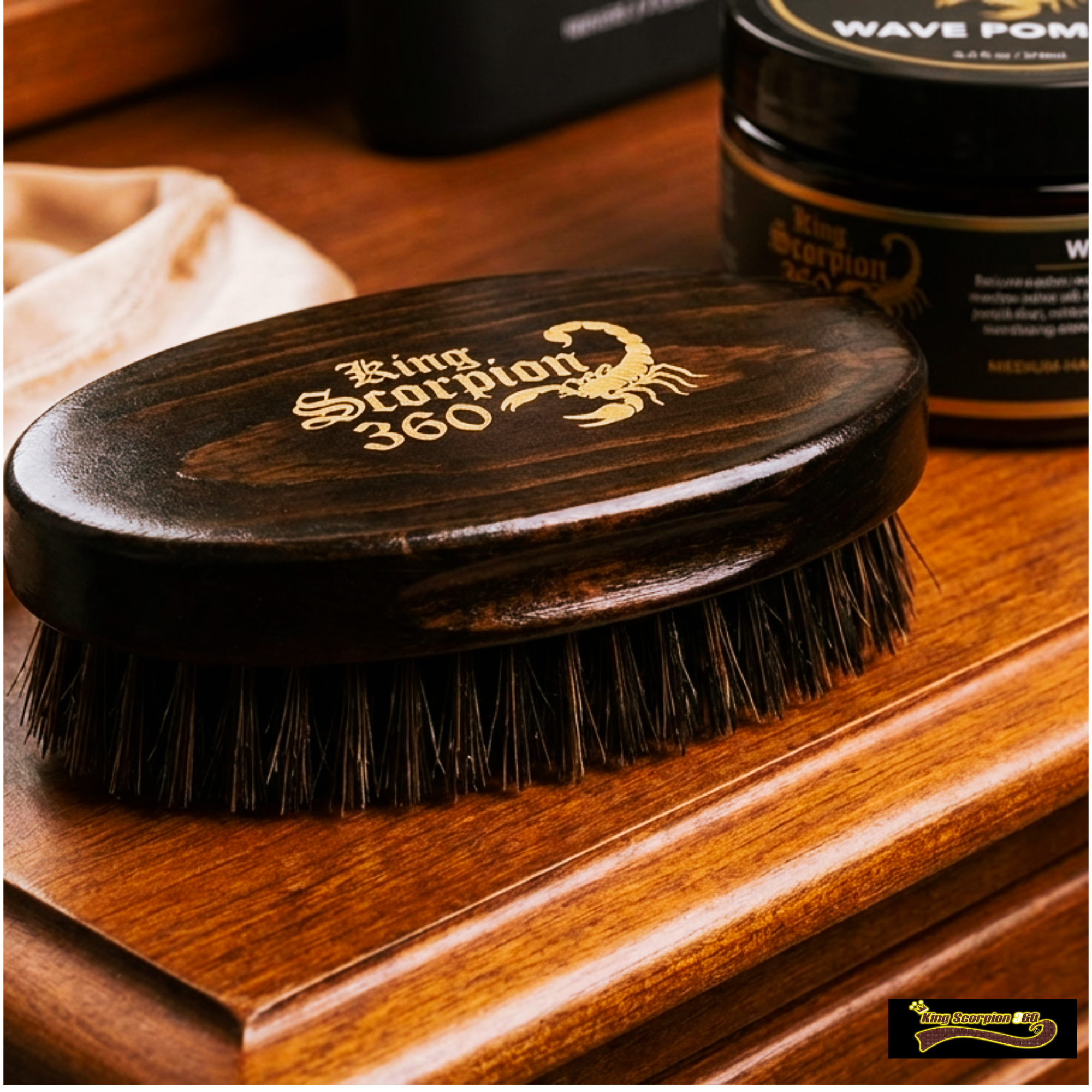 - Elite Status: King Scorpion 360 Wave Brush is the “luxury” choice. While they have standard models, they are famous for their high-end custom woods like Golden Oak and Black Pine. These brushes are often hand-finished and designed for wavers who want a tool that is as much a piece of art as it is a grooming instrument.